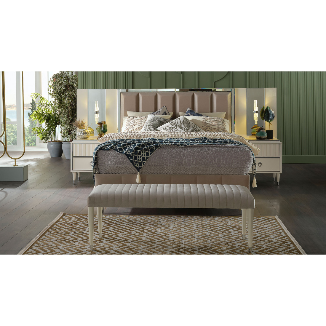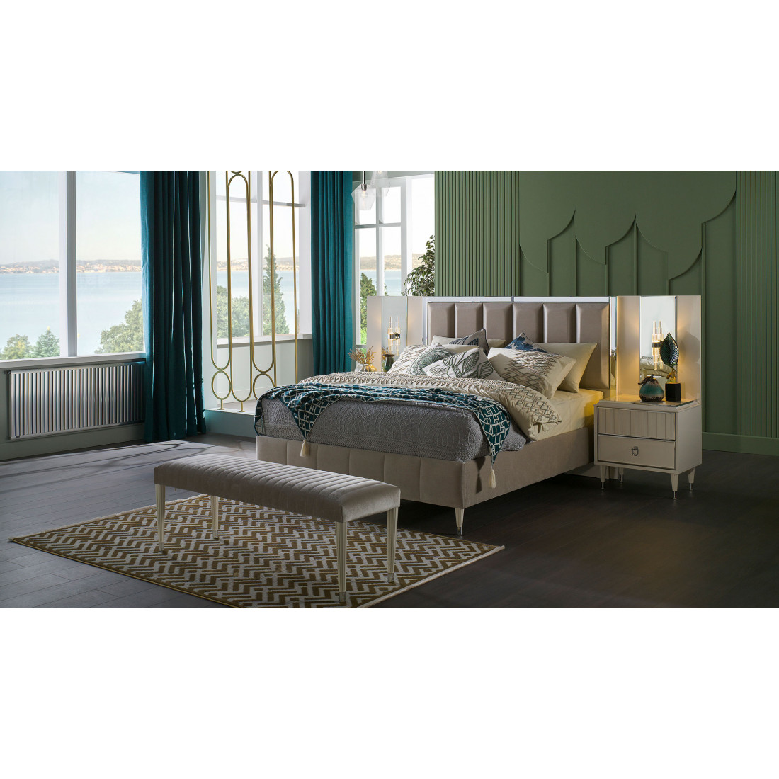 Дополните  двухспальнюю кровать Gravita (Гравита) GRAV-26от турецкого бренда BELLONA  соответствующими атрибутами для спального гарнитура.