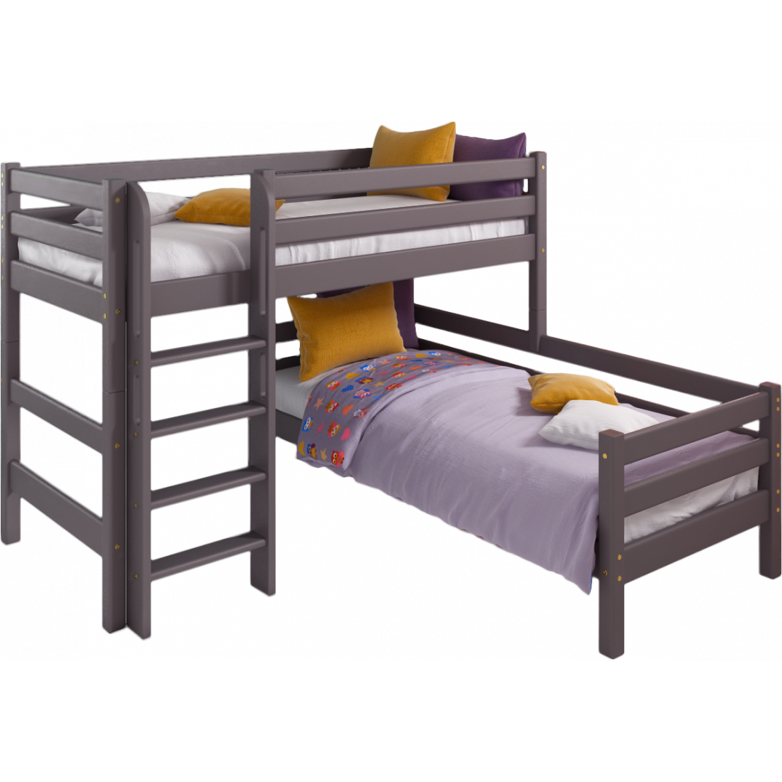 Кровать Соня Лаванда угловая вариант 7 с прямой лестницей